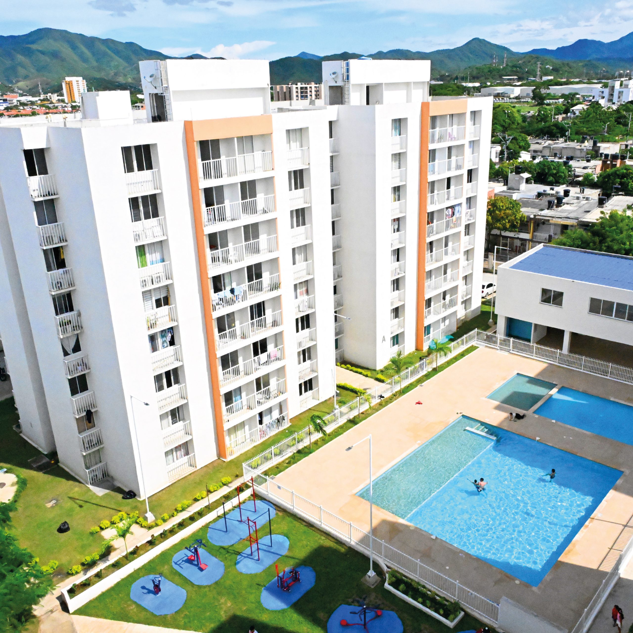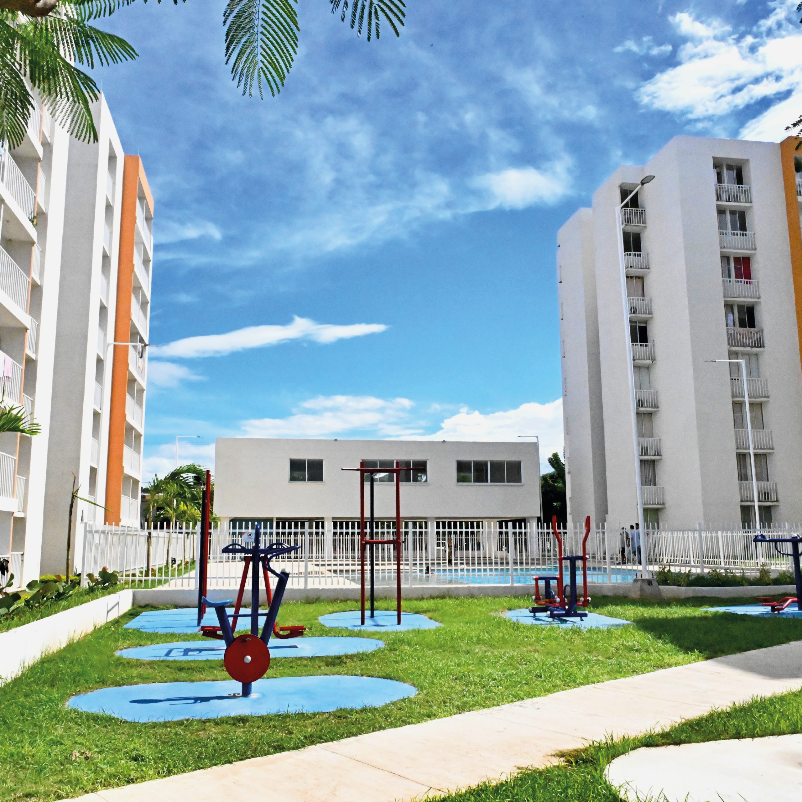El conjunto constará de 4 torres, cada una de 8 pisos y de 8 apartamentos por piso, apartamentos de 69.50m2 de área y serán entregados en obra gris, 3 habitaciones, 2 baños (1 alcoba principal y baño auxiliar), sala comedor, cocina, zona de labores y balcón.